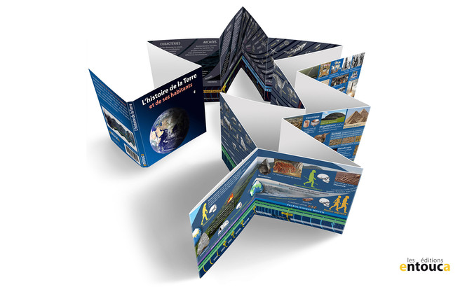Noah a choisi de consulter L'encyclopédie illustrée de l'Histoire du monde, publiée chez Usborne et Maya d'observer avec attention le dépliant L'histoire de la Terre et de ses habitants, publié chez les éditions Entouca.